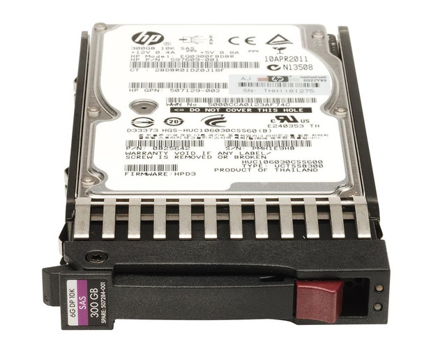 Part No: 507129-003 - HP 300GB 10000RPM SAS 3GB/s Sff Dual Port 2.5-inch Hard Drive with Tray