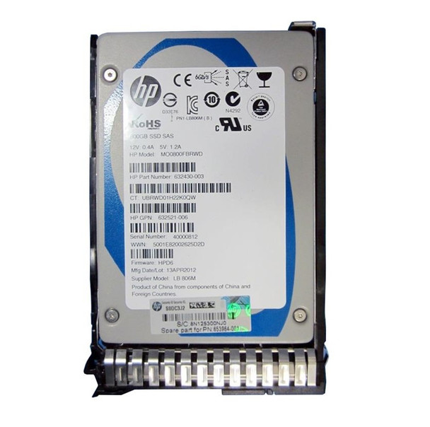Part No: 653109-B21 - HP 800GB SAS 6GB/s Hot-Pluggable 2.5-inch MLC Enterprise Solid State Drive