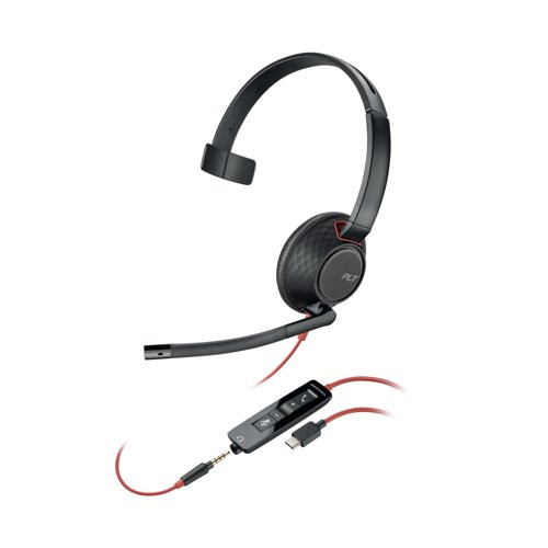 POLY Blackwire 5210 Monaural USB-C Headset +3.5mm Plug +USB-C/A Adapter (Bulk) - 8X230A6
